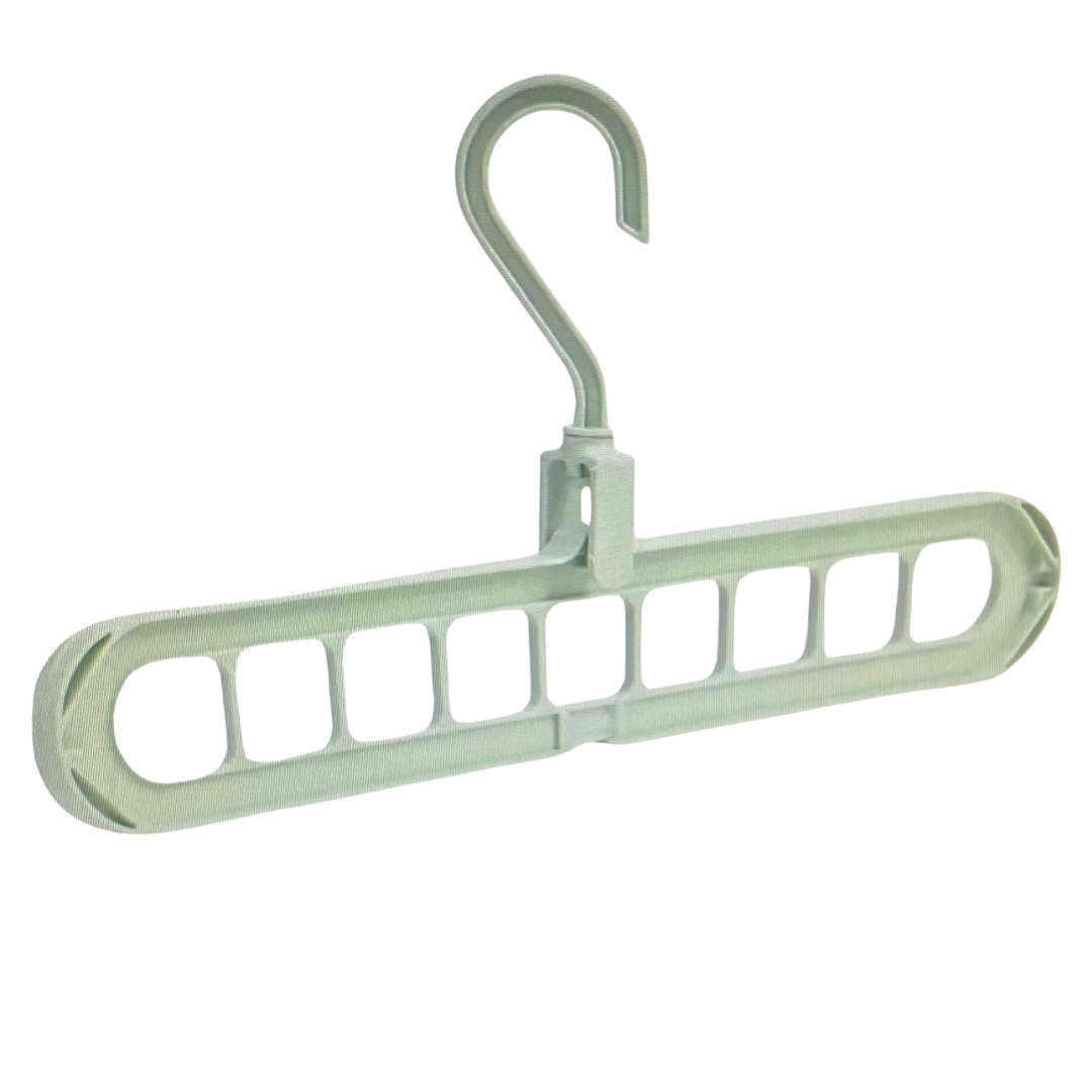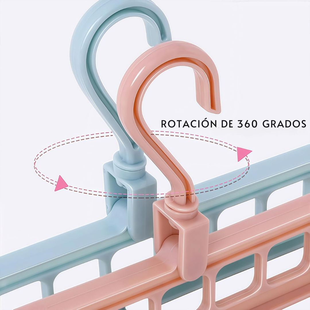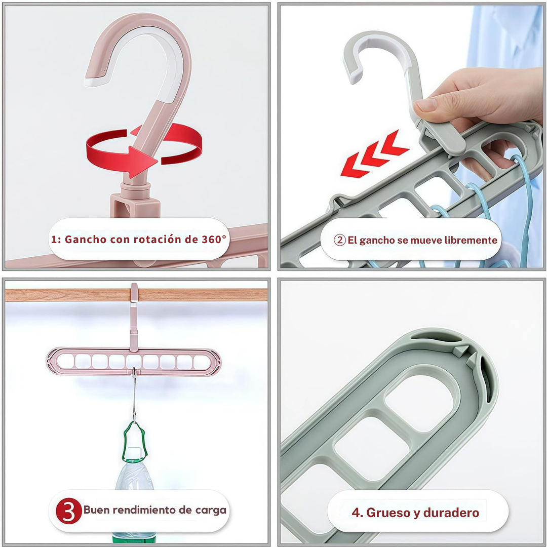 El colgador tiene un diseño giratorio y abatible. Puedes usarlo en posición horizontal para ver todas las prendas o verticalmente para ahorrar hasta un 80% de espacio en el armario.